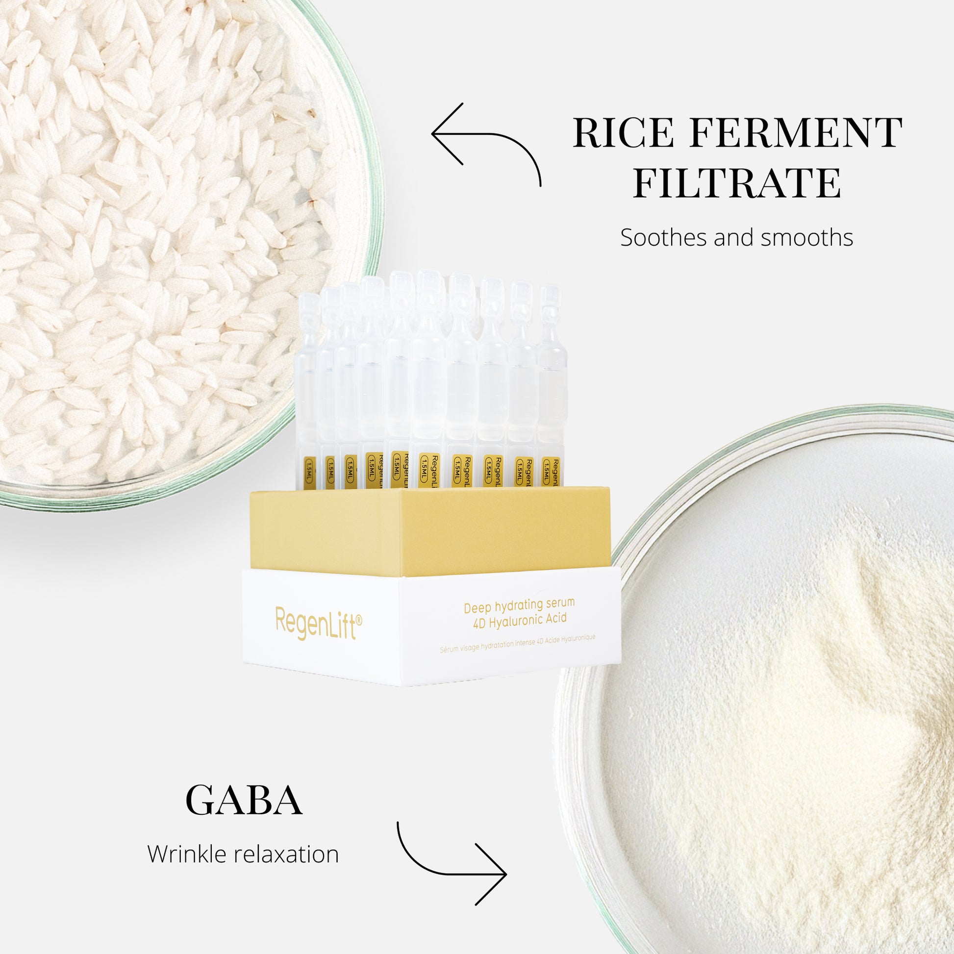 - Plumps the skin and improves elasticity, reducing the appearance of fine lines for wrinkles.